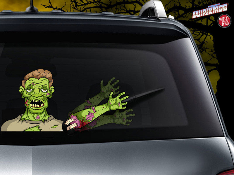 Dead Dave the Wave lost his arm but he didn't lose his drive. Universal size fits any lower mounted rear wiper. Both the WiperTag arm and window decal are removable. Both are UV protected against fading. The window decal is also laminated for additional protection.